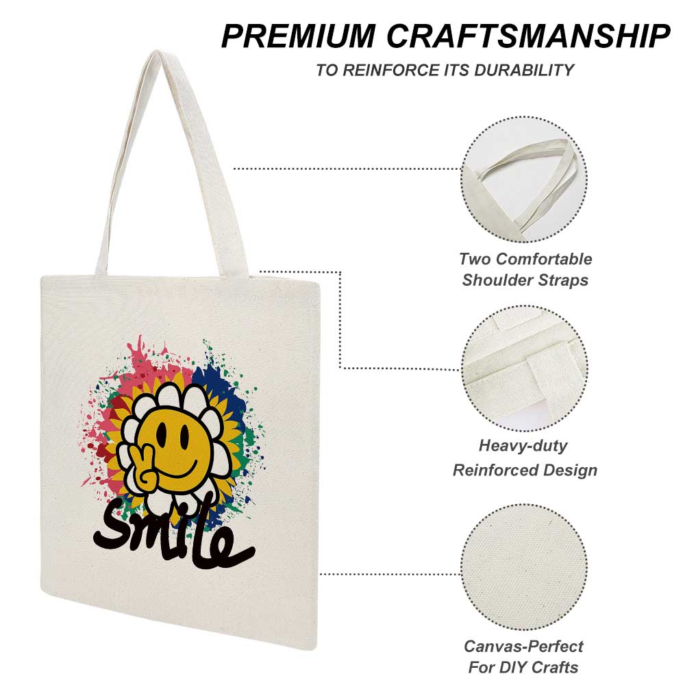 【 product performance 】Premium Material: Our tote bag is made from high-quality materials, making it sturdy, durable, fashionable, and versatile. Reusable: This reusable tote bag is eco-friendly and energy-saving. Product Features: A versatile tote bag perfect for outings. It can be used for storing items, shopping, carrying books, and more, making it a multifunctional bag. DIY Design: You can design it with your favorite patterns to create a personalized DIY tote bag.