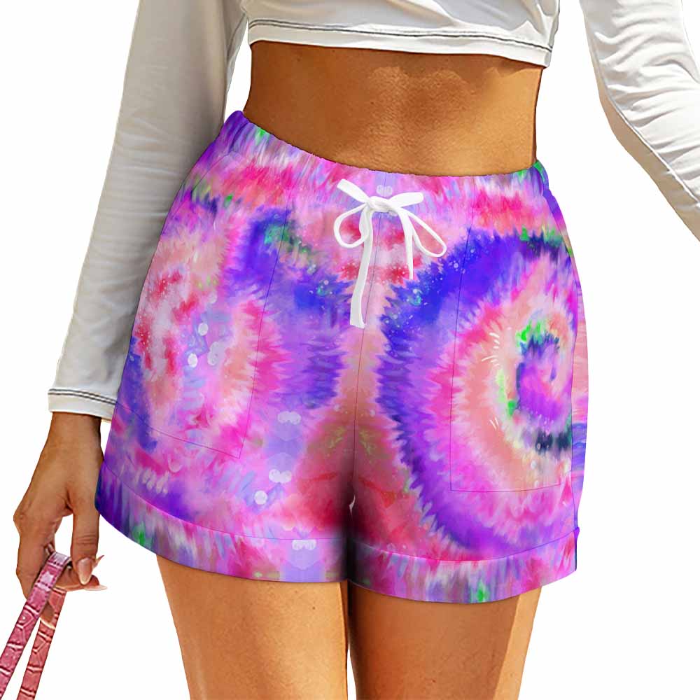 Chinese name:Premium Ice Silk High-Waist Flat Drawstring Loose Shorts (HP-) (Customizable Pattern)