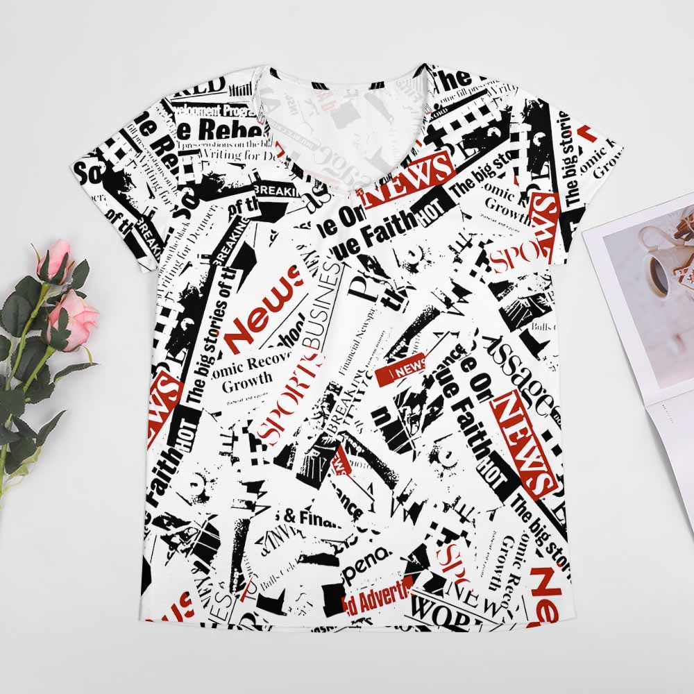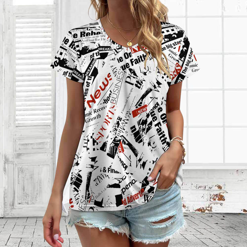 Chinese name:Women's V-Neck Short Sleeve T-Shirt VT-(Single Image/Collage Optional)