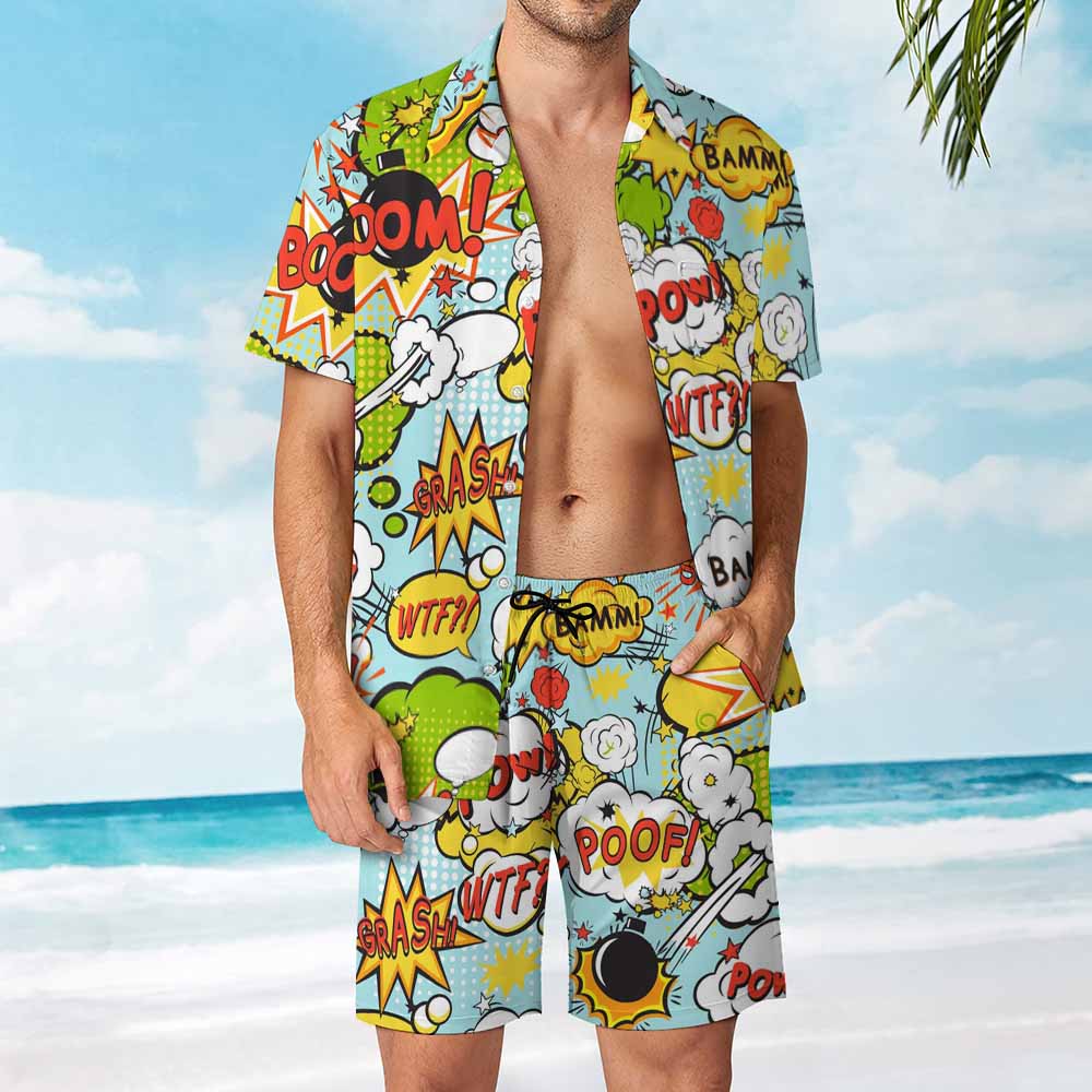 Comfortable & Durable: The bottom part, men's beach shorts, are quick-drying, comfortable, and durable, made from a comfortable fabric.