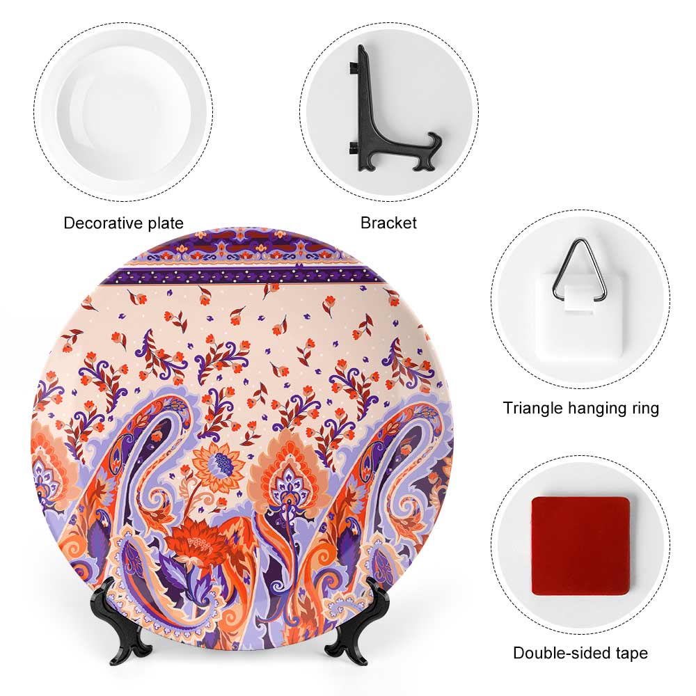 【 product performance 】Premium Material: Our decorative piece is made of ceramic material, which is sturdy and durable, with a smooth surface that won't scratch your hands. Great for Decoration: You can customize it with your favorite patterns on the plate and display it in different places according to the design. Easy to Install and Remove: This decorative plate features an adhesive design, making it very convenient to remove later. The adhesive leaves no marks on the wall, and installation is also very simple. Versatile Display: It can be displayed upright on a table with the included base stand, or it can be hung up. Both display methods look beautiful.