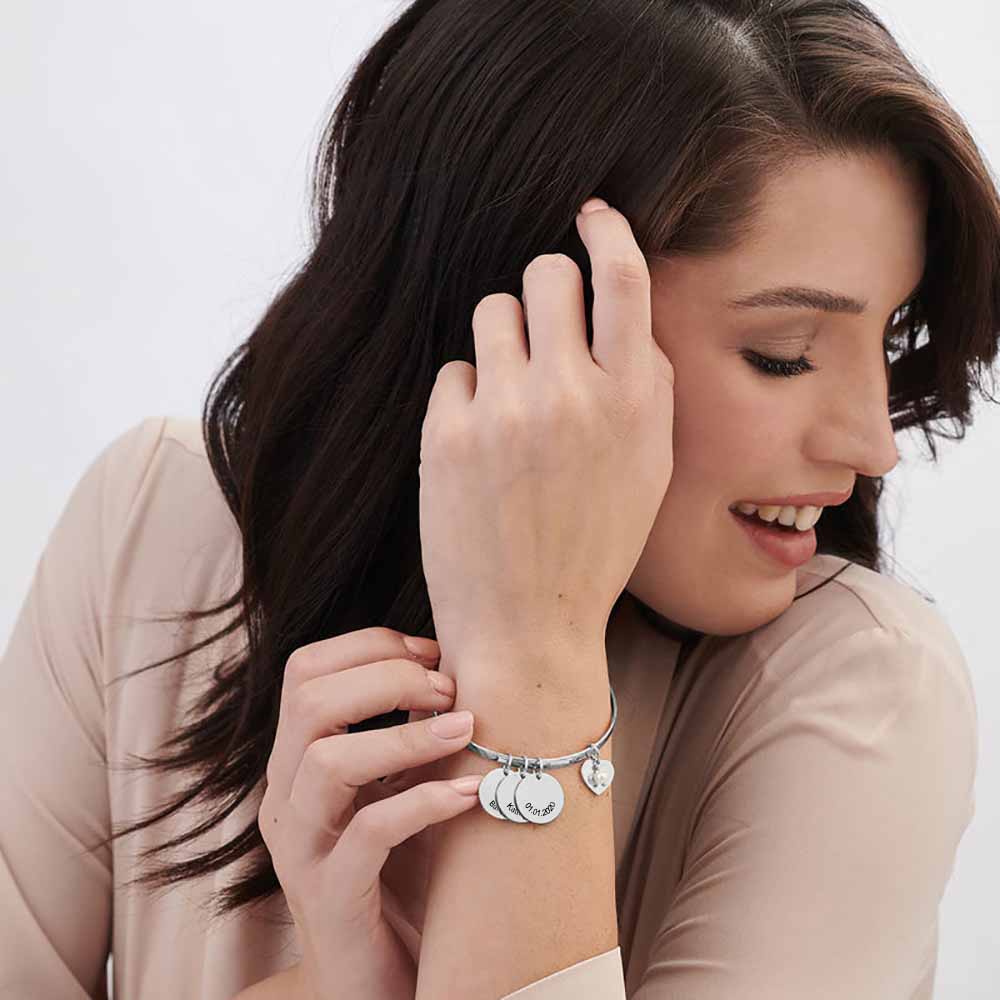 Product Features: Made of silver/copper, this bracelet has a superior texture and is lightweight, ensuring it won't burden your wrist. It features a classic bangle design with a customizable tag.