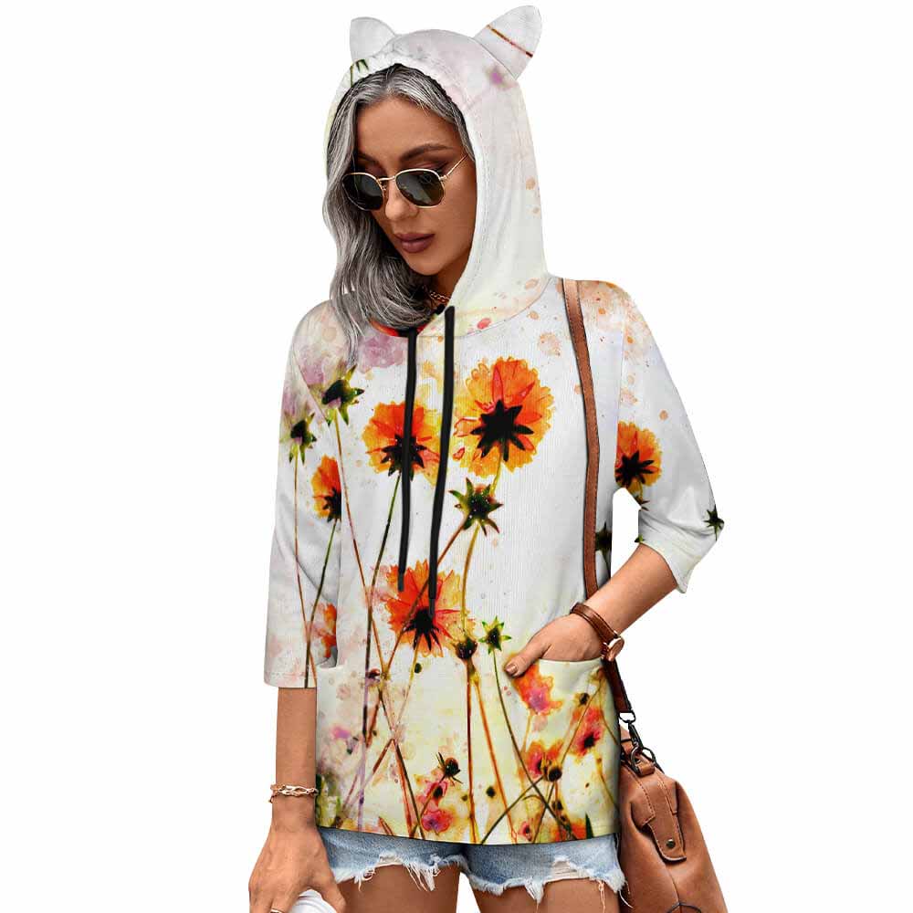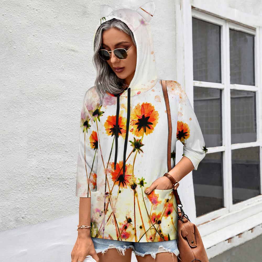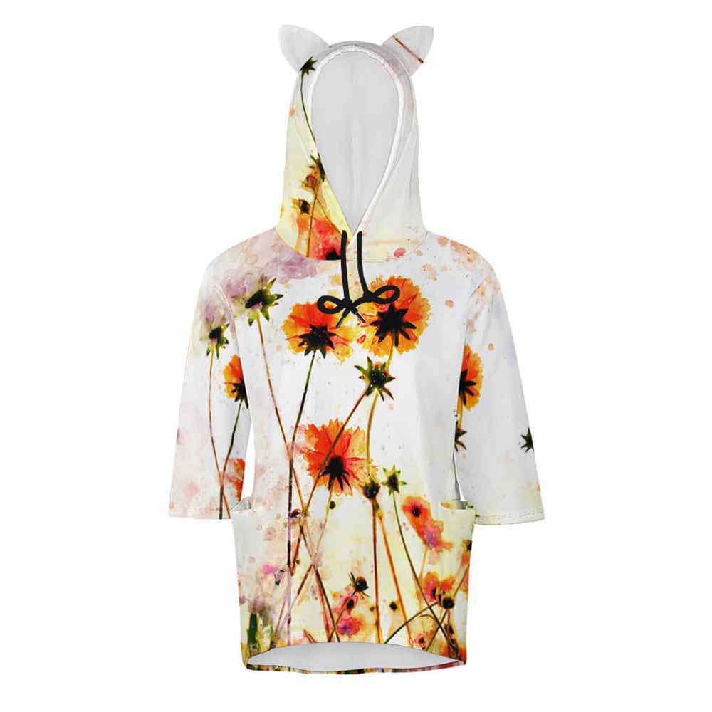 【 product performance 】Premium Fabric: This sweatshirt is made from high-quality polyester fabric, which is soft and comfortable to wear. Thoughtful Design: The drawstring hood showcases your charming style, and the three-quarter slim-fit sleeves accentuate your figure. The small ear design on the hood adds a cute and playful touch. Stylish & Versatile: Perfect for pairing with jeans, casual pants, or sneakers for a more fashionable and personalized look. Great Gift Idea: This makes a very thoughtful gift for your family, friends, and loved ones.