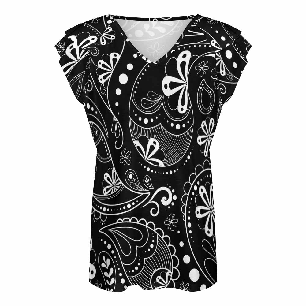 Ruffled Short Sleeve V-Neck T-Shirt BUT-(Customizable Pattern Optional)